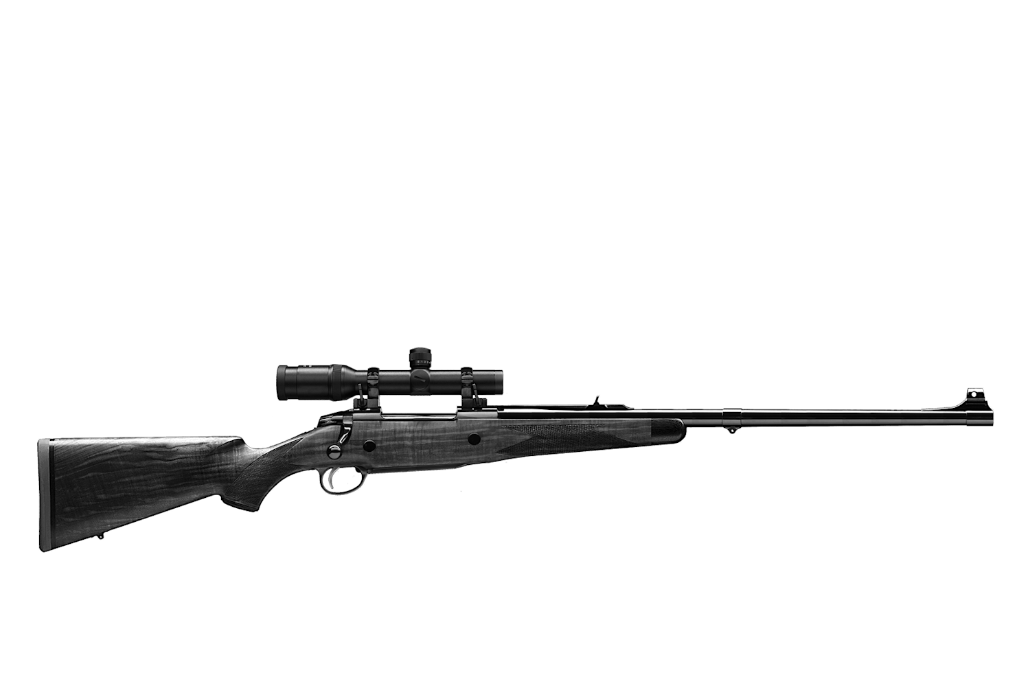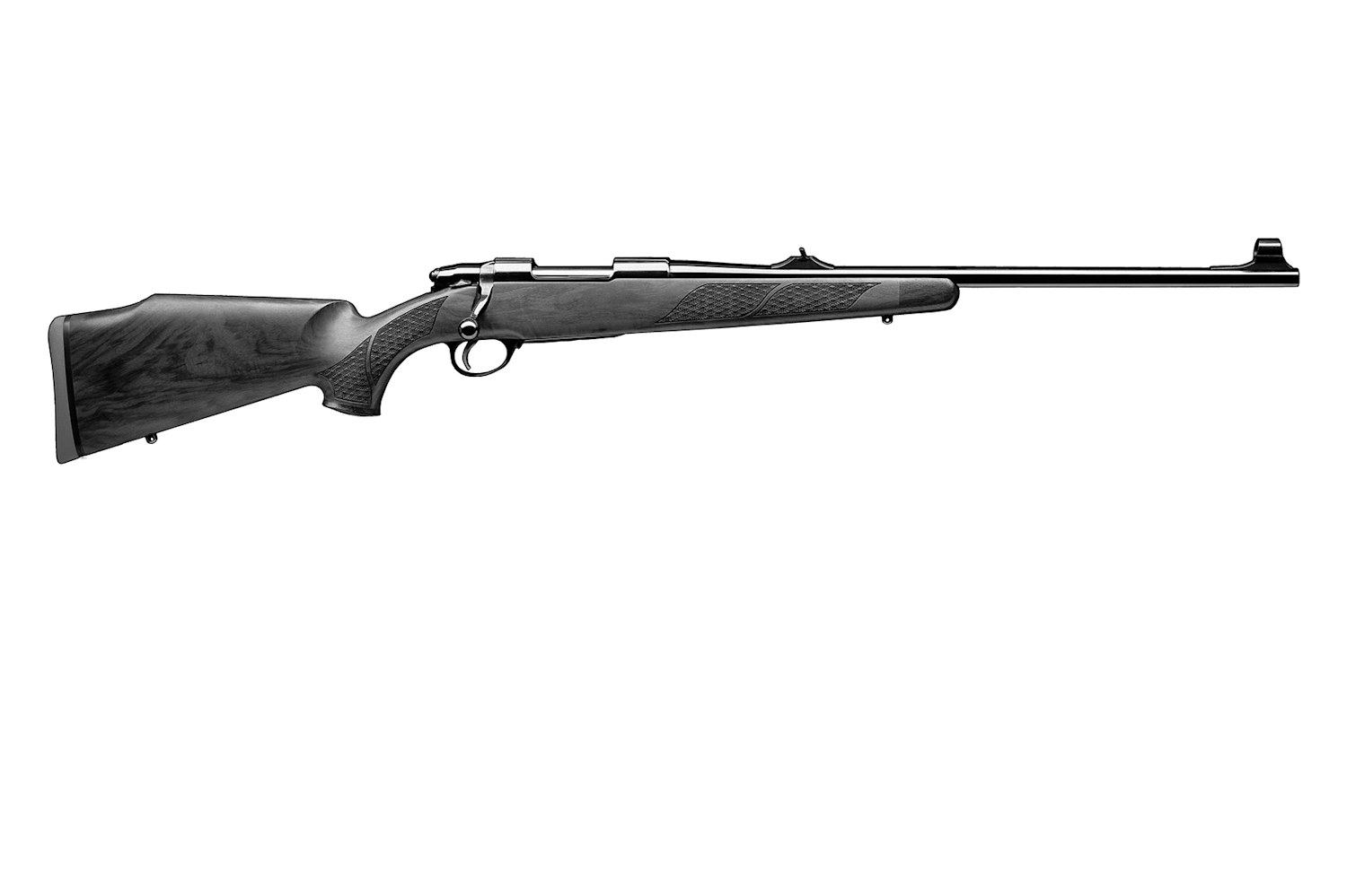 Sako 75 Deluxe - Classic design and craftsmanship. Beautifully grained high-grade walnut stock with handcrafted skip-line checkering, rosewood forend tip and a pistol grip cap with a silvery inlay. Highly polished metal parts. Fixed magazine with game motifs on the hinged floorplate. Available stock finish: oiled, matt-lacquered or glossy with 8 layers of highly polished lacquer.