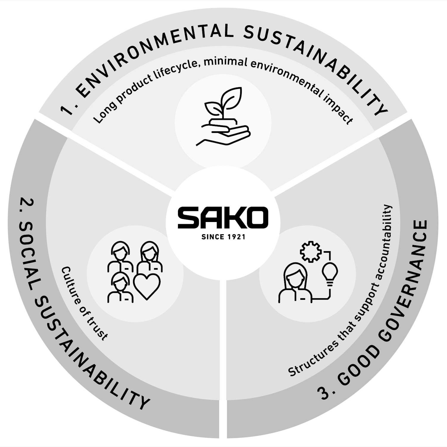 Sako's sustainability work is founded on safety, quality, and compliance. We operate in a strictly regulated industry, where trust is built through everyday actions: from design and manufacturing to supply chain management and cooperation with authorities.